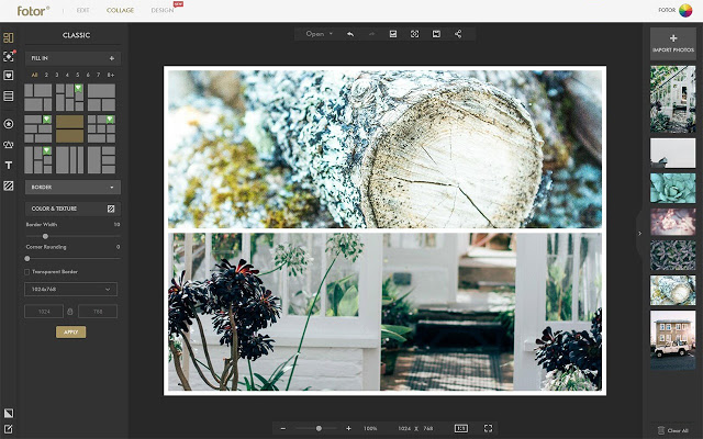 A Fotor meglehetősen hasonlít a Canvához. Használd a Fotor-t, ha gyorsan szeretnéd kicsit felturbózni a képeidet. Ez a szerkesztő megoldást nyújthat neked portré képek szebbé tételéhez (retusáláshoz), kollázs készítéshez, de akár egy poszt vagy hirdetési kreatív elkészítéséhez is. Találsz benne effekteket, matricákat, széles betűtípus választékot, szerkeszthető, kész sablonokat. JPG, PNG, PDF formátumokban tudod kimenteni az elkészült terveidet. A Forotnak szintén van mobilos alkalmazása, melyet letölthetsz Androidra és IOS-re is.